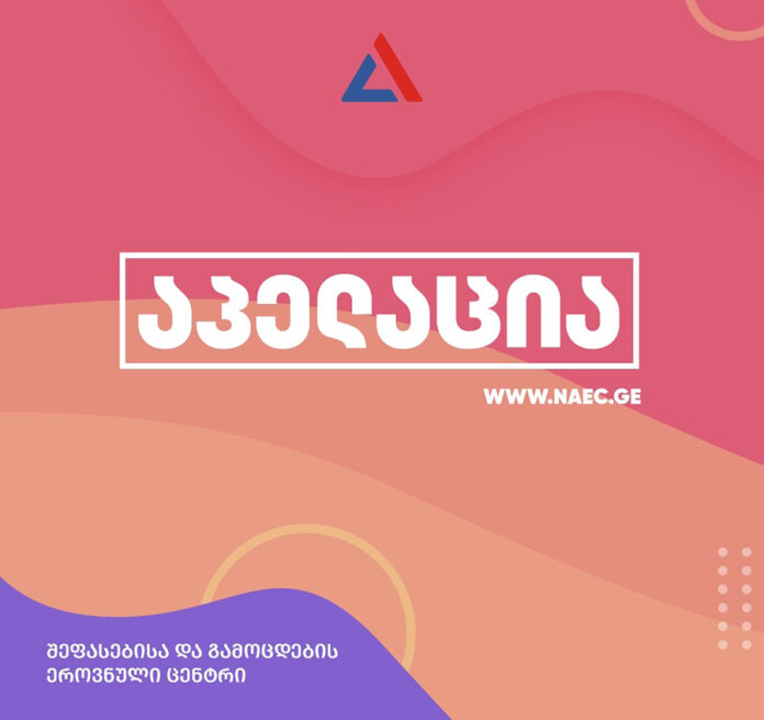 სააპელაციო განაცხადები მიიღება მხოლოდ ელექტრონულად ვებგვერდზე: online.naec.ge