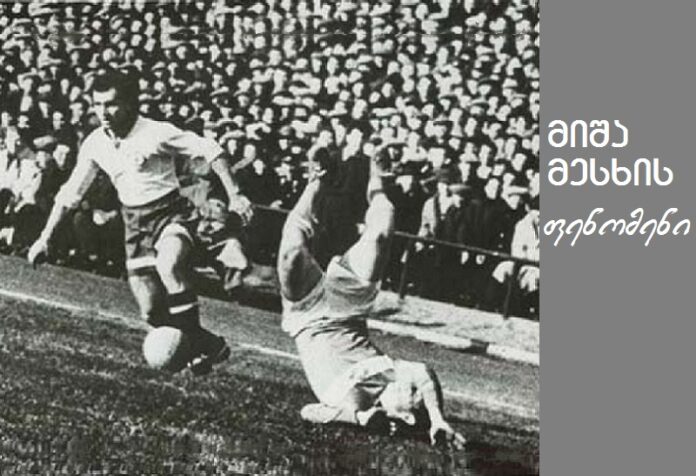 1950 წელს 13 წლის მი­ხე­ილ მეს­ხ­მა ცნო­ბილ 35-ე სა­ფეხ­ბურ­თო სკო­ლას მი­ა­შუ­რა, სწო­რედ აქ მო­უხ­და ლე­გენ­დას ნამ­დ­ვი­ლი მწვრთნე­ლე­ბი­სა­გან შე­გო­ნე­ბე­ბის მოს­მე­ნა, დიდ ფეხ­ბურ­თ­თან და­ახ­ლო­ე­ბა 1954 წლი­დან, რო­ცა 17 წლის ახალ­გაზ­რ­და თბი­ლი­სის „დი­ნა­მოს“ შე­უც­ვ­ლე­ლი ფეხ­ბურ­თე­ლი გახ­და, 1969 წლამ­დე, თბი­ლი­სელ­თა შე­მად­გენ­ლო­ბა­ში 284 ჩა­ტა­რე­ბულ მატ­ჩ­ში 54 ბურ­თი გა­ი­ტა­ნა; სა­ნაკ­რე­ბო კა­რი­ე­რა­ში რამ­დე­ნი­მე ისე­თი შთამ­ბეჭ­და­ვი თა­მა­ში აქვს ჩა­ტა­რე­ბუ­ლი, რომ­ლის ანა­ლო­გი ქარ­თუ­ლი ფეხ­ბურ­თის ის­ტო­რი­ას არ ახ­სოვს. 1960 წლის ევ­რო­პის ჩემ­პი­ონ სლა­ვა მეტ­რე­ველ­თან ერ­თად, 1962 წლის მსოფ­ლიო ჩემ­პი­ო­ნა­ტის მო­ნა­წი­ლემ, 1961 წლის 18 ნო­ემ­ბერს არ­გენ­ტი­ნის ნაკ­რე­ბი მის­სა­ვე მო­ე­დან­ზე 2:1 და­ა­მარ­ცხა. მი­ხე­ილ მეს­ხი­სა და სლა­ვა მეტ­რე­ვე­ლის დუ­ეტ­მა ფან­ტას­ტი­კუ­რი თა­მა­ში აჩ­ვე­ნა, მატ­ჩის შემ­დ­გომ, არ­გენ­ტი­ნელ­თა კლუ­ბის მე­პატ­რო­ნე­ებ­მა ქარ­თ­ველ ფეხ­ბურ­თე­ლებს სო­ლი­დუ­რი თან­ხა – 50 მი­ლი­ო­ნი პე­სო შეს­თა­ვა­ზეს.