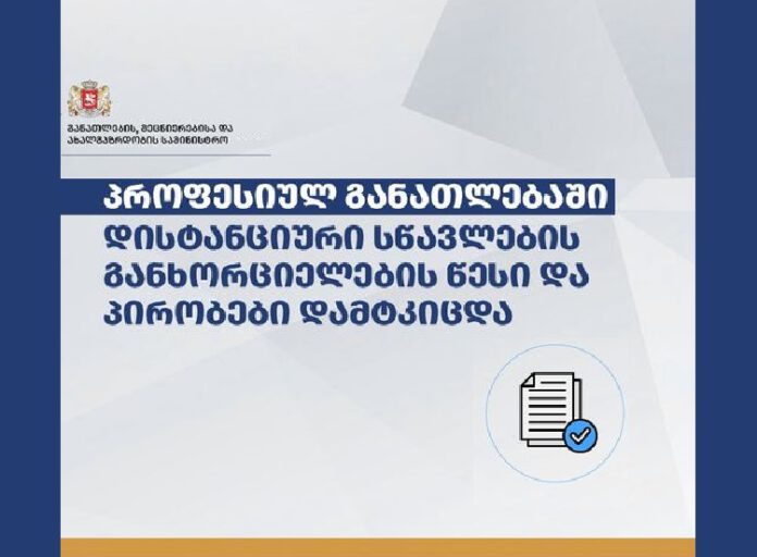 „პროფესიული განათლების შესახებ” საქართველოს კანონში შესული ცვლილებების საფუძველზე საქართველოს განათლების, მეცნიერებისა და ახალგაზრდობის მინისტრის ბრძანებით პროფესიულ განათლებაში დისტანციური სწავლების განხორციელების წესი და პირობები დამტკიცდა.
