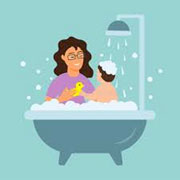 7. გამოიყენეთ ყურადღების გადასატანი აქტივობები – შეგიძლიათ, ბანაობის დროს, მისცეთ საპნის ბუშტები, ჩაუსხათ ქაფის გელი წყალში, მის აბაზანაში მოათავსოთ სხვადასხვა წყლის სათამაშო, წყლის სენსორული ბურთები და ა.შ